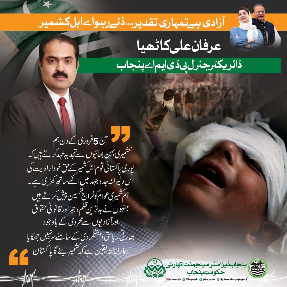 On the occasion of Kashmir Solidarity Day (February 5), DG PDMA Irfan Ali Kathia expresses solidarity with our Kashmiri brothers and sisters.