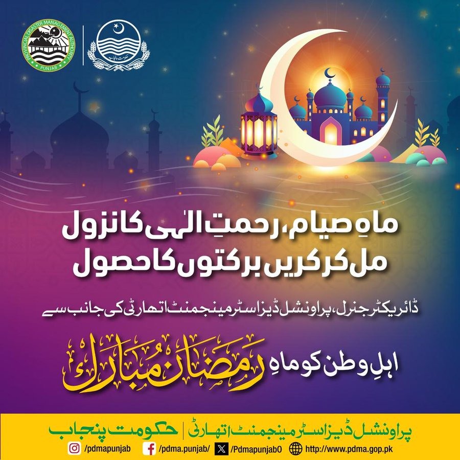 PDMA Punjab wishes Ramadan Mubarak to all Muslims.