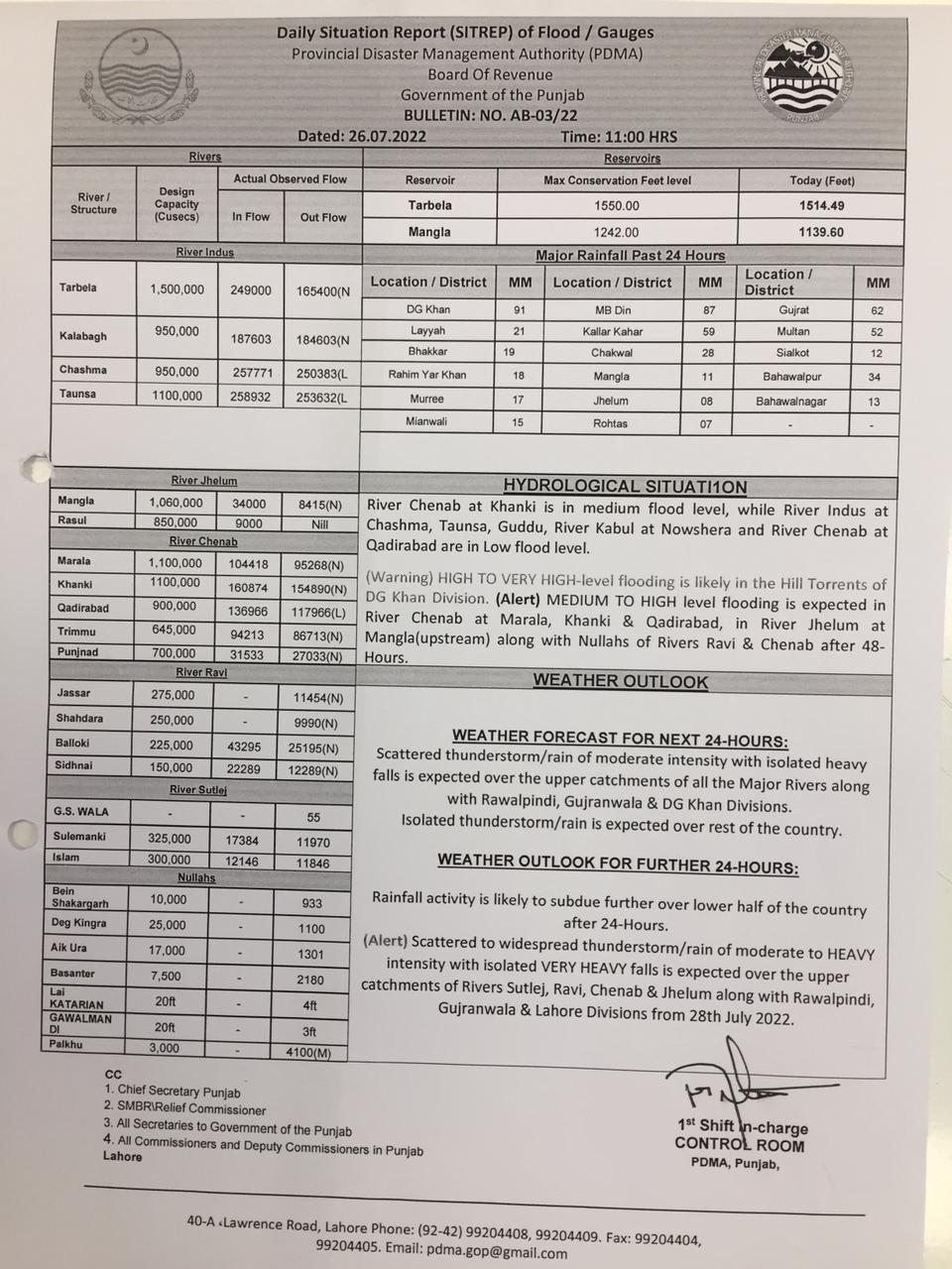 - Gauges Report of Flood 1200 Hours (01 July 2022)